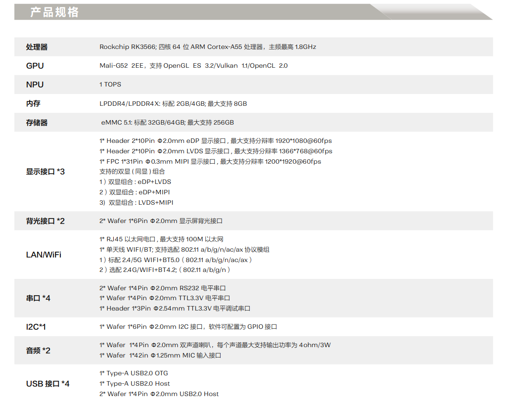 ? 采用瑞芯微RK3566 四核64 位Cortex-A55 處理器, 主頻最高1.8GHz,效能有大幅提升;采用22nm先進(jìn)工藝,具有低功耗高性能的特點